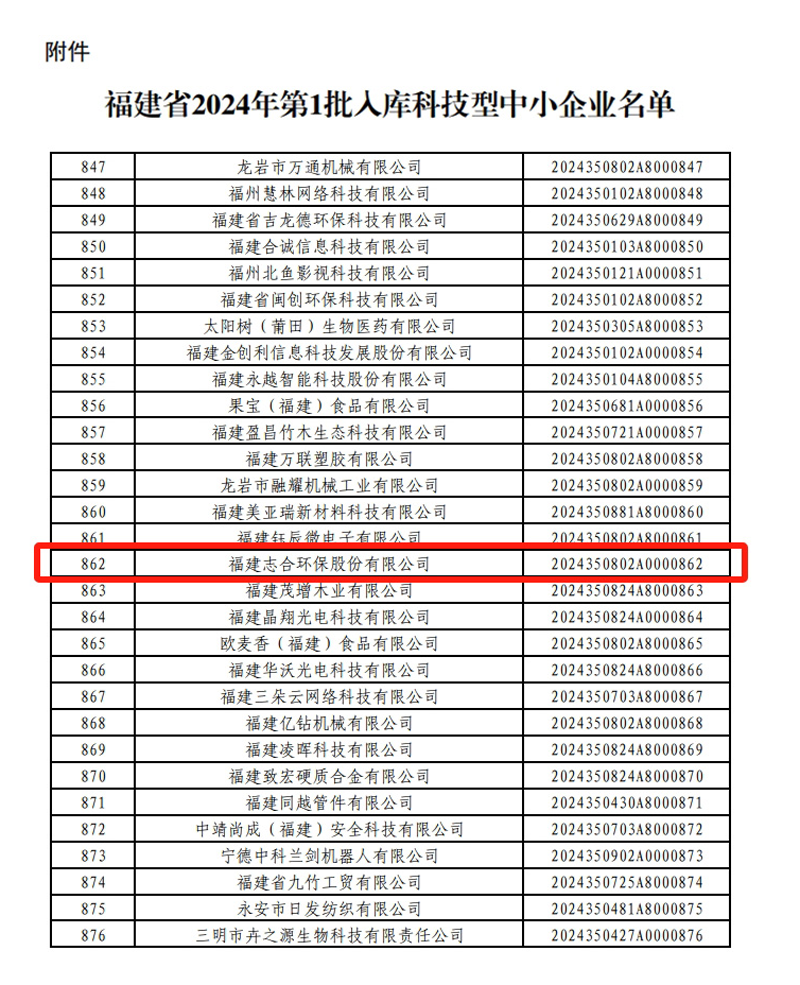 2024年8月1日,經(jīng)福建省科學(xué)技術(shù)廳審核,公司成功入選福建省2024年第1批入庫科技型中小企業(yè)。